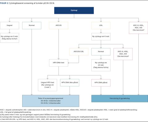 Kvinder i aldersgruppen 30-59-år screenes enten med HPV-test eller cytologiundersøgelse af screeningsprøven (Figur 1).