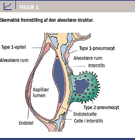 > 97% af alveolernes areal [4]. En svær lungepåvirkning (f.eks. infektion) med tilhørende epitelskade kan forsinke reepitelialiseringsprocessen med en prolongeret denudering af basalmembranen, hvilket kan bidrage til ændrede cellulære interaktioner og ubalanceret produktion af polypeptider, diverse cytokiner, vækstfaktorer, oxidanter og proteaser med ændret arkitektur og fibrose som resultat [5]. En bedre evne til opheling er dog muligvis medvirkende til den ofte bedre prognose hos børn end hos voksne.
