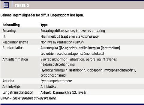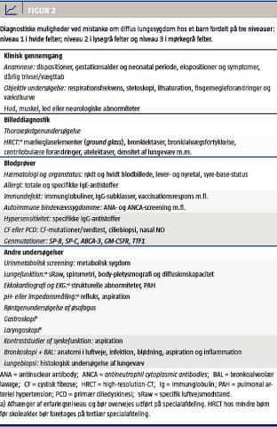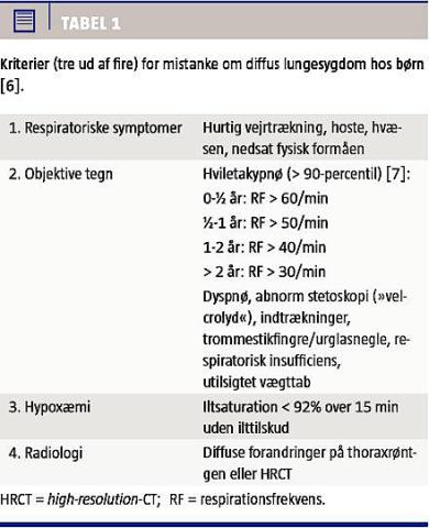 kontrolleret CT kan muligvis mindske dette problem noget, men det er ikke udbredt. Radiologiske forandringer fundet på HRCT (Figur 2) kan for en erfaren pædiatrisk radiolog give et fingerpeg om den underliggende diagnose [12], men en efterfølgende lungebiopsi kan sjældent undværes [13].