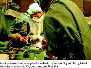 Amnionvæskeemboli (AVE) er en akut obstetrisk komplikation, som er årsag til ca. 10% af alle maternelle dødsfald i USA [1]. Hyppigheden i Danmark er ukendt. Udenlandske opgørelser angiver incidenser mellem 1:8000 og 1:80.000 med mortaliteter, der varierer mellem 26% og 86% [1].