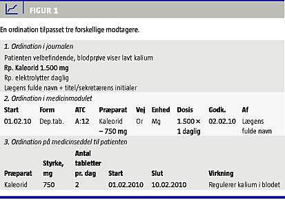 I Figur 1 ses eksempler på den samme ordination i tre forskellige medier. Figuren viser, at informationsindholdet i ordinationen er tilpasset medie og modtager.