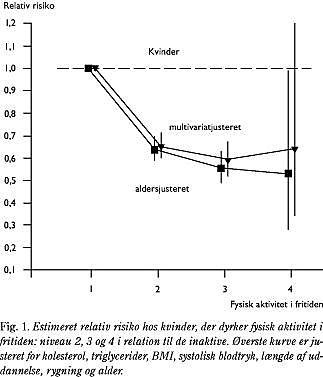 Relativ risiko ved fysisk inaktivitet hos kvinder