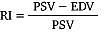 RI er en ratio, dvs. uden benævnelse og følgelig vinkeluafhængig. RI, der beregnes ud fra spektrogrammet og ofte automatisk af skanneren, er et udtryk for karrets komplians og modstand. Normalværdien for RI er 0,60-0,70 [6, 9] (Figur 3).