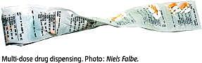 Dosisdispensering (DD) er en ordning, hvor den enkelte borger får pakket sin medicin på apoteket i såkaldte dosispakker. Hver pakke indeholder medicin, der skal tages på et bestemt tidspunkt. Pakkerne leveres til patienter fra apoteket hver 14. dag. Leveringen fortsætter i to år, medmindre lægen aktivt udsteder en recept med påtegningen »seponeres«. I forbindelse med sektorskift er der en potentiel risiko for fejl med hensyn til håndtering af patienternes medicin. I Region Hovedstaden er der lavet en tværgående vejledning herfor. Der er ikke megen registreret viden om, hvor mange patienter der ved indlæggelsen modtager dosisdispenseret medicin, eller hvordan dosisdispenseret medicin håndteres under indlæggelse og ved udskrivelse.