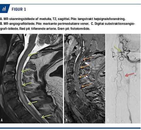 nelsen skyldes en erhvervet abnorm forbindelse mellem arterie(r) og vene på duralt niveau, hvilket medfører venøs stase og iskæmi [3]. Klinisk fremstår ovennævnte fisteltyper som andre årsager til transversel myelopati med paraparese, sensoriske symptomer/udfald og sfinkterpåvirkning [2], men typisk med mere protraheret forløb end de mere hyppige inflammatoriske årsager og evt. med skubvis forværring [1, 4, 5].