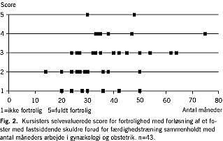 Materiale og metoder: Der indgik 44 læger i uddannelsesstilling i undersøgelsen, som var deskriptiv og også en behovsanalyse. Kursisterne foretog selvevaluering på en rangskala af fortrolighed med færdighederne før og efter træningen. Statistisk metode: Mann-Whitney-test.