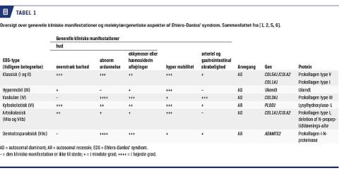 EDS er en multisystemsygdom med variable fænotyper dels typerne imellem og dels inden for samme type [7] (Tabel 1).