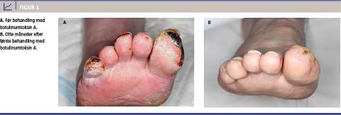 Vi vil her beskrive en sygehistorie, hvor hurtig intervention med lokalanalgetika og botulinumtoksin A afværgede truende amputation af tæerne hos en patient (Figur 1).