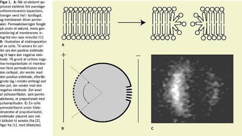 En cellemembran har en vis elektrisk kapacitans. Ved elektroporation påtrykkes et elektrisk felt udefra, så membranens kapacitans overstiges, hvorved membranen midlertidigt destabiliseres og bliver permeabel (Figur 1 ). Elektroporation er en reversibel proces, hvor cellemembranens integritet genskabes i løbet af få minutter. Elektroporation anvendes til at introducere ioner, farvestoffer, farmaka, antistoffer, oligonukleotider, RNA og DNA - kort sagt molekyler, der har det til fælles, at de vanskeligt af sig selv finder vej over cellemembranen [1].