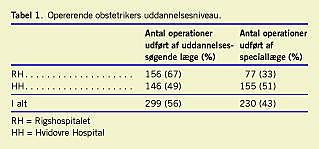 Ved en gennemgang af alle journaler på kvinder, som havde fået foretaget elektivt sectio ved team i 2004, fandt vi, at over halvdelen (60,5%) kunne udskrives som planlagt efter to døgn. Den gennemsnitlige indlæggelsestid var 2,9 døgn [4]. Det viste sig også, at en stor del af kejsersnittene blev foretaget af uddannelsessøgende læger (Tabel 1 ). I en periode på to måneder (fra den 1. juni til den 1. august 2005) fik alle patienter, der skulle have foretaget kejsersnit ved elektiv sectio-team, udleveret et valideret spørgeskema om deres tilfredshed med teamet. Spørgeskemaet blev udleveret på informationsdagen og indsamlet igen på tredjedagen. På HH kunne 72 have indgået i undersøgelsen, men 22 udgik på forhånd, da de fik deres sectio flyttet til en anden dag (akut eller subakut). En enkelt udgik pga. sprogvanskeligheder. Halvtreds gravide på HH fik udleveret spørgeskemaet, og 47 afleverede det (svarprocent 94). På RH udførtes i alt 32 kejsersnit i perioden og alle 32 afleverede spørgeskemaet (svarprocent 100). I alt besvarede 79 fødende (96,3%) spørgeskemaet (Tabel 2 ).