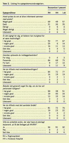 På to væsentlige punkter adskiller de to regimener sig fra hinanden. På HH havde kun 38% set operatøren før, og kun 38% svarede, at det er vigtigt at have set personalet tidligere. På RH tilstræber man, at operatøren ser de gravide på informationsdagen, og det lykkedes hos 81%, her svarede 69%, at det i høj grad er vigtigt at have set personalet før. Det lader til, at tilfredsheden hænger tæt sammen med, om man får indfriet sine forventninger. På HH kan faderen være medindlagt, og 77% svarede, at det i høj grad er vigtigt at have denne mulighed. På RH kan faderen ikke være medindlagt, og kun 53% svarede, at det er vigtigt at have denne mulighed. Igen ser det ud til, at det, der betyder noget, er, om man får indfriet sine forventninger.