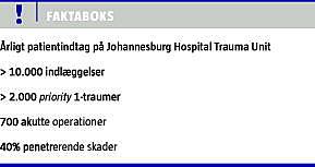 Det blev til 23 priority 1-resuscitationer det seneste døgn. Rigtig mange knivstik og trafikuheld, overraskende ingen skuddramaer. Det var en almindelig lørdag på Trauma Unit i Johannesburg.
