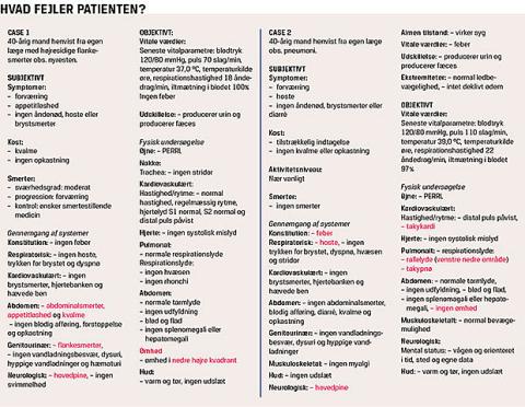 Ugeskrift for Læger vil naturligvis gerne hjælpe til i denne overgangsfase. Vi bringer derfor to diagnostiske cases fra hverdagen på hospitalet. Bemærk, hvordan alle unormale ting er fremhævet med rødt.