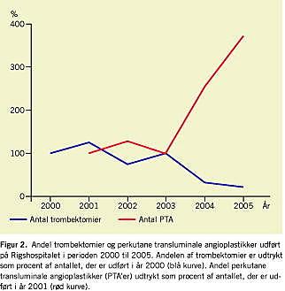 Middelobservationstiden var ti måneder (median: syv måneder; spændvidde: 0-31 måneder). I observationsperioden døde syv patienter (10%), hvoraf seks havde velfungerende fistler frem til dødstidspunktet. Fem patienter blev nyretransplanteret, og seks blev overflyttet til forsat dialyse på et andet sygehus. Der var kun seks tilfælde af trombose i observationsperioden. Til sammenligning viser Figur 2 antallet af tromb-ektomier/patientår udført på Rigshospitalet i år 2000 til 2005 sammenlignet med antallet af PTA udført i samme periode. Figuren demonstrerer et fald i antallet af trombektomier i takt med en stigning i antallet af PTA.