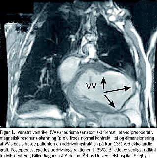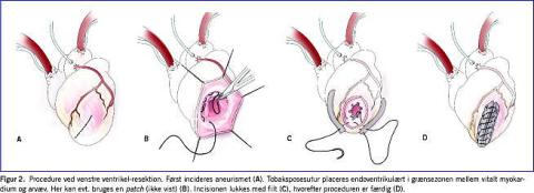 Udvikling af venstre ventrikelaneurisme er en alvorlig senkomplikation til akut myokardieinfarkt (AMI). Aneurismedannelse kan medføre tromboemboliske komplikationer, ventrikulær takykardi og hjerteinsufficiens [1]. Trods optimal medicinsk behandling og mulighed for koronar revaskularisering kan der hos en del patienter udvikles svær hjerteinsufficiens. Disse patienter er ikke sjældent kandidater til hjertetransplantation, men udbuddet af donorhjerter er begrænset, ligesom mange patienter er mindre egnede hertil f.eks. pga. nyreinsufficiens eller høj alder. Kirurgisk venstre ventrikelrekonstruktion med aneurismeresektion er en mulighed for at bedre hjertets pumpefunktion og derved undgå eller udskyde terminalt hjertesvigt [2-5].