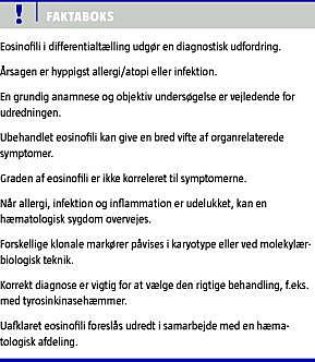 Udredning ved eosinofili over 1,5 × 10 9 /l bør ind-ledes umiddelbart, vejledt af en detaljeret anamnese