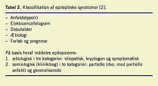 Kriterierne for opdeling i epileptiske syndromer er angivet i Tabel 2 .