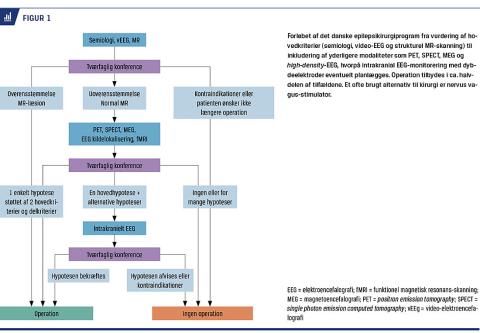 I Figur 1 vises et flowdiagram over det danske præoperative epilepsikirurgiprogram. Programmet er baseret på international konsensus [6], hvor den initiale vurdering af, om en henvist patient er kandidat til epilepsikirurgi er baseret på de tre hovedkriterier: semiologi, EEG og MR-skanning.