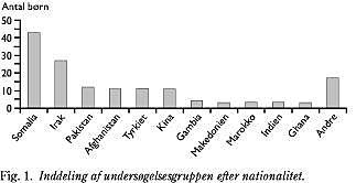 Børnene kommer fra 25 forskellige lande, og de største nationalitetsgrupper udgøres af tosprogede elever med somalisk, irakisk, pakistansk, afghansk, tyrkisk og kinesisk baggrund (Fig. 1 ). Gruppen af børn fra Somalia udgør 29,3%.