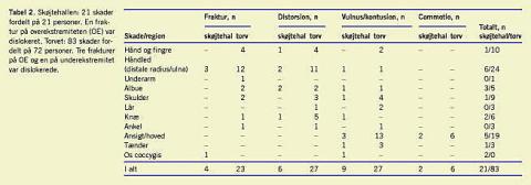 Ser man på det store antal besøgende på skøjtebanerne, udgjorde de uheldige, der måtte omkring en skadestue, kun 0,35% af alle skøjtegæsterne. Der er rapporteret lignende resultater i en ældre dansk undersøgelse med 0,5% [5] og i en engelsk undersøgelse [6], hvor der kun var 0,21%, som krævede skadestuebesøg.
