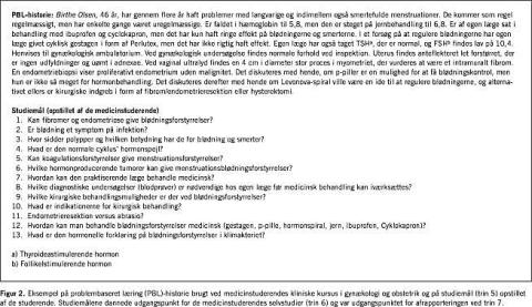 Diskussion: På et klinisk kursus i gynækologi og obstetrik fandtes det både muligt og tilfredsstillende at arbejde med PBL som pædagogisk metode, og det viste sig at være både gennemførligt og tilsyneladende hensigtsmæssigt at blande undervisningsformer som PBL med et traditionelt curriculum. Et videre perspektiv ville være at beskrive, hvordan de studerendes læring påvirkes af valgte pædagogiske metoder.