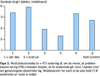 Alle medicinstuderende, der deltog i PBL, svarede, at man på afdelingen skulle fortsætte med PBL. En stor del af de studerende anførte på spørgeskemaet, at de læste mere og reflekterede mere ved PBL-metoden, og fire af seks hold anførte, at PBL-metoden fik dem til at gå mere i dybden med det gynækologisk-obstetriske speciale. Spørgeskemaet er ikke valideret, og disse betragtninger kan i nærværende studie kun anvendes i en hypotesegenererende sammenhæng. Disse observationer er samstemmende med de internationale erfaringer, hvor man anfører, at PBL-metoden er fundet velegnet til at styrke sammenhængen mellem de basale fag og den kliniske praksis [3, 4, 8].