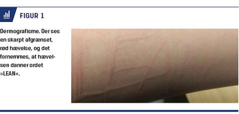 En 34-årig hospitalsansat læge (artiklens forfatter) havde i flere år oplevet generende, kløende urtikarielt udslæt, især på overekstremiteternes forside. Der var desuden tendens til dermografisme (Figur 1). Når det var værst, gjorde tilstanden det vanskeligt for hende at koncentrere sig om sine arbejdsopgaver. Udslættet kom udelukkende i arbejdstiden. Som barn havde hun kontakteksem i forbindelse med flere fødeemner, herunder ost og peberfrugt. Dette eksem var svundet i voksenalderen, hvor der imidlertid blev bemærket en ikke nærmere karakteriseret hudirritation ved kontakt med tomat- og jordbærplanter samt parfumeholdigt vaskepulver. Hun havde ingen medikamentelle allergier og tålte penicillin, men havde dog fået et typisk medikamentelt eksantem under behandling med amoxicillin for luftvejsinfektion med Haemophilus influenzae. Der blev iværksat yderligere udredning efter vejledning fra en dermatologisk kyndig kollega (uden for arbejdstid og uden anvendelse af arbejdsstedets it-systemer, herunder uden opslag i egen journal). Eftersom symptomerne var klart hyppigst i arbejdstiden, var der initialt mistanke om en allergisk reaktion på uniformsmaterialet (kunststof). Det var imidlertid bemærkelsesværdigt, at udslættet primært var lokaliseret til ikkeuniformsdækkede områder, og at det ikke forekom hver dag. Varme- og kuldeurticaria kunne udelukkes, idet symptomerne opstod uafhængigt af temperaturen.