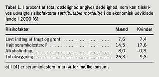 I Danmark har vi overvejende baseret vores indsats inden for primær forebyggelse på individuel rådgivning. Enhver har således et personligt ansvar for at motionere, undgå rygning, spise sundt osv. I de senere år har vi gennemført en tobakspolitik, der indebærer regulering foruden rådgivning, men ernæringspolitikken har fortsat været individbaseret. Andetsteds har jeg argumenteret for, at en sådan tilgang er utilsrækkelig. Den kardiovaskulære epidemi har desværre en god prognose, så længe vi producerer for mange usunde og for få sunde levnedsmidler. Den mad, de kloge undgår, kommer i maven på de mindre kloge. Det er derfor på høje tid at tænke på, at landbrugspolitik og fødevarepolitik udformes i sammenhæng med ernæringspolitik og sundhedspolitik [10]. Tanken kan tænkes, selv i en højtid.