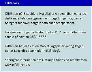 <li>Ishoy T, Jensen K. Forgiftninger hos børn: udviklinger gennem to årtier. Ugeskr Læger 1999;161:2967-9.</li>