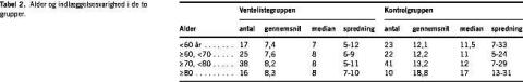 Indlæggelsesvarigheden øgedes med alderen (Tabel 2 ).