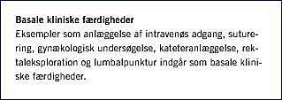 I de nye uddannelsesprogrammer for turnuslæger og almen bloklæger [8-9] er der i målbeskrivelserne beskrevet om en del kliniske færdigheder: »hvis lægen ikke har været konfronteret med en patient med pågældende lidelse, kan lægen tilegne sig den påkrævede kompetence ved særlige kurser, færdighedslaboratorier e.l.« Kommissionen forudsætter, at der sikres de uddannelsessøgende adgang til færdighedslaboratorier i det omfang, der forudsættes i målbeskrivelserne.