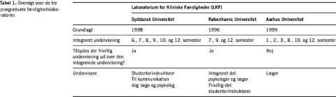 Der findes tre prægraduate færdighedslaboratorier i Danmark. Et på hver af de tre universiteter Aarhus Universitet, Københavns Universitet og Syddansk Universitet (SDU) Tabel 1.