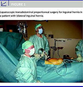 Dette er en retrospektiv opgørelse over alle patienter, der blev opereret med TAPP (Figur 1 ) på en afdeling i perioden 2002-2009. Resultater fra en implementeringsperiode fra 1. januar 2002 til 31. december 2007 (periode I) blev sammenlignet med perioden efter omstrukturering fra 1. januar 2008 til 31. december 2009 (periode II). Følgende ændringer blev iværksat ved starten af periode II: Rutinemæssig anvendelse af kateter à demeure (KAD) blev opgivet, operationsteknikken blev ensrettet, der blev etableret et fast mindre operationsteam, og der blev gennemført oplæring af udvalgte kirurger. Endvidere blev alle patientforløb protokollerede, og indikationen for TAPP frem for Lichtenstein's procedure blev lempet i forbindelse med gennemførelse af videnskabelige projekter. Det primære effektparameter i denne undersøgelse var komplikationer inden for de første 30 dage postoperativt.