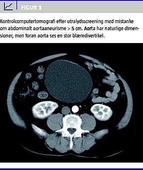 Abdominale aortaaneurismer (AAA) er hyppigst asymptomatiske og har en prævalens på 2-8% hos mænd over 60 år, stigende med alderen. Ved AAA-ruptur er mortaliteten 80-95%, mens den ved elektiv kirurgi er 5-6% [1, 2]. Den asymptomatiske fase med en forholdsvis lav behandlingsrisiko sammenlignet med den symptomatiske fase har givet anledning til randomiserede screeningsundersøgelser. Således viste danske tal i overensstemmelse med udenlandske undersøgelser en 67% lavere AAA-specifik mortalitet og 75% færre akutte operationer i screeningsgruppen sammenlignet med kontrolgruppen [3]. Screening for AAA implementeres derfor i disse år i bl.a. England, Norge og Sverige.