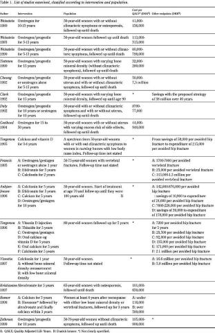 <li>Tosteson AN, Rosenthal DI, Melton LJ, Weinstein MC. Cost effectiveness of screening perimenopausal white women for osteoporosis: bone densitometry and hormone replacement therapy. Ann Intern Med 1990; 113: 594-603.</li>