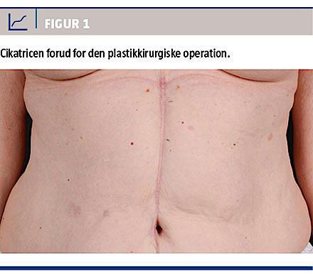 Ved en plastikkirurgisk forundersøgelse 11 måneder efter splenektomien fandt man breddeøget midtlinjecikatrice i epigastriet (Figur 1). Der var udtalt palpationsømhed lokaliseret i et bestemt område til højre for cikatricen.