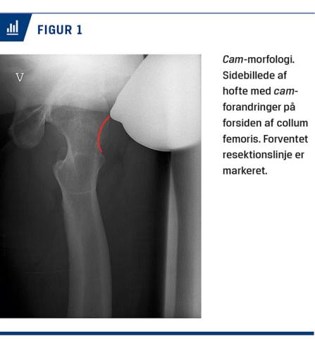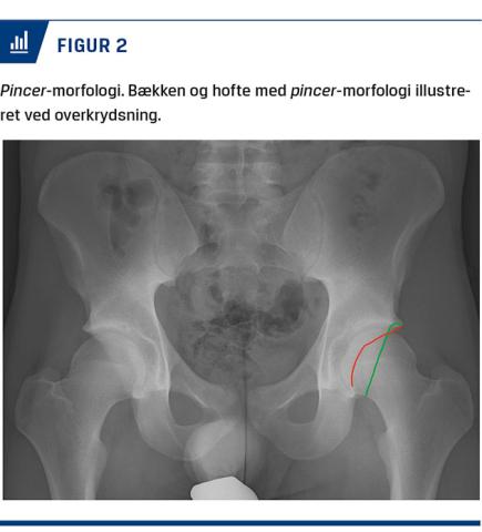 Dette er forudsat, at der ikke foreligger artrose, dysplasi eller retroversion af acetabulum. FAIS er den hyppigste diagnose blandt yngre patienter med langvarige idrætsrelaterede lyske- og hoftesmerter, der fører til operation [2]. FAIS skyldes cam- og/eller pincer-morfologi, der kan føre til kollision mellem caput-collum-overgangen på femur og acetabulum [1]. Cam-morfologi er karakteriseret ved et ikkesfærisk caput femoris (Figur 1), mens pincer-morfologi er karakteriseret ved øget overdækning af caput femoris på grund af enten øget knogledannelse på acetabulum og/eller øget dybde af acetabulum (Figur 2) [1].