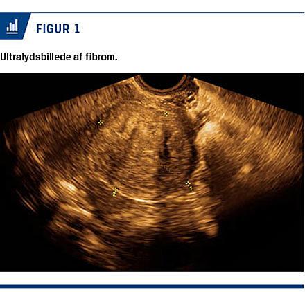 Mistanken om fibromer fås ved en gynækologisk undersøgelse. Ved en vaginal ultralydskanning vil man oftest kunne bekræfte diagnosen på grund af fibromernes karakteristiske ultrasoniske udseende (Figur 1). Supplerende MR-skanning er nyttig for mere eksakt bestemmelse af antal og lokalisation ved multiple eller store fibromer [9].
