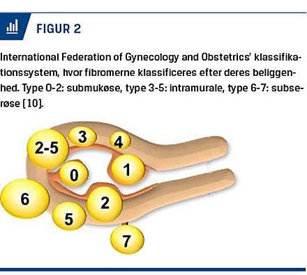 En nøjagtig beskrivelse af beliggenhed og størrelse af fibromerne er afgørende for valget af behandling. International Federation of Gynecology and Obstetrics har udviklet et klassifikationssystem, hvor fibromerne klassificeres efter deres beliggenhed: type 1-7 [10] (Figur 2).