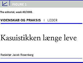 Kasuistikker bliver ofte betragtet som andenrangsforskning, men er alligevel en vigtig del af lægevidenskaben. De er ofte de første beskrivelser af nye sygdomme, bivirkninger og årsagssammenhænge. Endvidere kan de have en vigtig uddannelsesmæssig funktion ved at minde læserne om sjældne, men alvorlige manifestationer af velkendte sygdomme. Formålet med denne undersøgelse var at beskrive, hvilken type kasuistikker der publiceres i et dansksproget generelt lægevidenskabeligt tidsskrift.