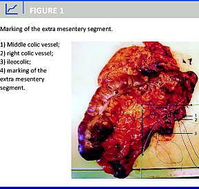 I alt 11 patienter med colontumor beliggende oralt for højre fleksur indgik i undersøgelsen. Operationen blev indledt på traditionel vis, og det blev bestemt og markeret, hvor vasa ileocolica skulle deles. Herefter blev operationerne udført som den udvidede operationsmetode, og efter præparatet var fjernet, har operatøren ved hjælp af markeringen bestemt, hvilken del af krøset centralt som var taget ekstra med ud. Dette område blev markeret med sutur.