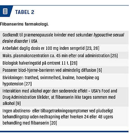 Flibanserin blev i august 2015 godkendt af FDA som det første præparat til behandling af præmenopausale kvinder med sekundær HSDD [9], mens det endnu ikke vides, om det vil blive tilgængeligt i Europa.