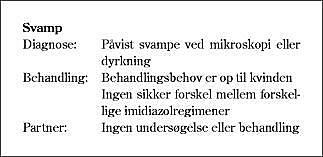 Men forklaringen kan også findes i kvindens oplevelse og tolkning af en fysiologisk normal vaginalsekretion. Det er lægens opgave at vurdere disse forhold, så de sammen med de objektive fund og mikrobiologiske undersøgelser kan danne grundlag for en rationel stillingtagen til, hvorledes den enkelte kvinde kan hjælpes bedst muligt.