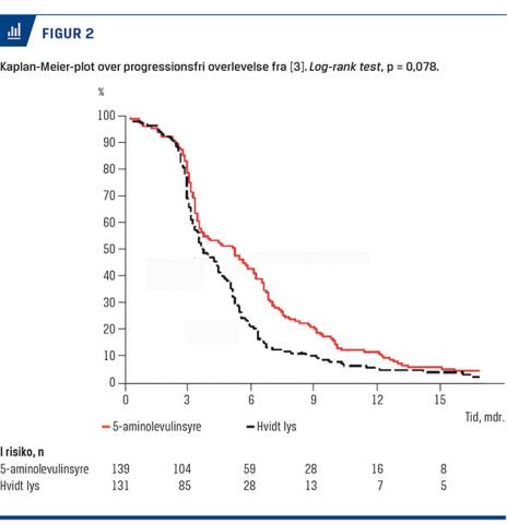 (p = 0,0001), og den progressionsfri overlevelse efter seks måneder var 41,0% i 5-ALA gruppen mod 21,1% i gruppen, som var blevet opereret under anvendelse af konventionelt hvidt lys (p = 0,0003).