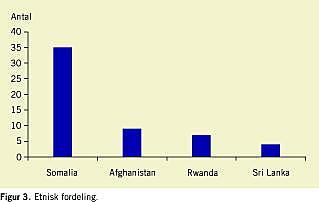 I vort materiale stammer de fleste fra Somalia, og tallene ville måske have været anderledes, hvis den etniske sammensætning havde været mere varieret. Materialet var dog for lille til en opdeling i etniske undergrupper (Figur 3).