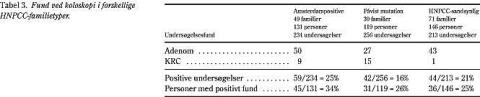 Påvisning af en sygdomsfremkaldende genfejl kan opfattes som det ultimative bevis på, at HNPCC er arveligt betinget og ikke en tilfældig ophobning af KRC; mod forventning var der ikke flere positive fund i familier med påvist mutation. Der var færre KRC, men lige så mange positive fund i familier, hvor HNPCC er sandsynlig, som i familier med påvist genfejl, screeningen findes derfor velindiceret. En mulig forklaring kan være, at adenokarcinomudviklingen er langsommere i disse familier, hvilket måske også forklarer, at familierne ikke opfylder Amsterdamkriterierne. Afklaring af screeningseffekten hos de forskellige familietyper må afvente indhentning af alle screeningsresultater.