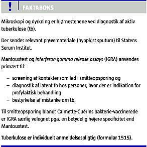 <li>Løkke A, Hilberg O, Seersholm N. Diagnostik af tuberkulose. København: Dansk Lungemedicinsk Selskab, 2009.</li>