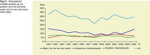 Forekomsten af gonoré og syfilis har i mange år været lav i Danmark. I de seneste år er der set en stigning i begge disse infektioner [13, 14]. En lignende udvikling er set i flere vestlige lande, herunder Sverige, hvor der også er konstateret stigning i de to infektioner. I 2003 blev der blandt MSM konstateret et udbrud af syfilis, som strakte sig ind i 2004. Dette udbrud understregede vurderingen af, at disse stigninger kan være udtryk for ændret sexadfærd i retning af mere usikker sex, muligvis dog kun blandt en mindre gruppe af MSM. Opgørelserne har også vist, at en del af disse danske MSM med nykonstateret syfilis og gonoré faktisk er smittet med hiv.