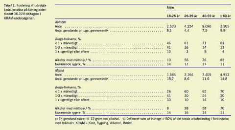 Vi anvendte data fra KRAM-undersøgelsen, som er en ny stor undersøgelse af danskernes sundhed. Undersøgelsen kaldes KRAM, fordi den primært fokuserer på betydningen af Kost, Rygning, Alkohol og Motion. Dette studie bygger på dataindsamlingen i perioden fra marts 2007 til juni 2008, hvilket omfatter data fra ni af de i alt 13 kommuner, der indgår i KRAM-undersøgelsen (Aalborg, Sønderborg, Hillerød, Struer, Næstved, Guldborgsund, Brøndby, Albertslund og Faaborg-Midtfyn). Alle borgere på 18 år eller derover fik tilsendt et brev med en personlig kode og en invitation til deltagelse i et internetbaseret spørgeskema. I alt 54.147 personer loggede på internettet og udfyldte spørgeskemaet. I hver kommune gennemgik ca. 1.700 borgere tillige en helbredsundersøgelse. Dette studie er imidlertid udelukkende baseret på spørgeskemabesvarelserne.