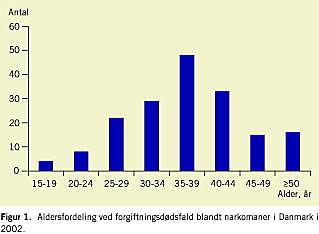 Metode: Materialet omfattede alle forgiftningsdødsfald i 2002 blandt narkomaner, der var blevet undersøgt ved de tre retsmedicinske institutter i Danmark.